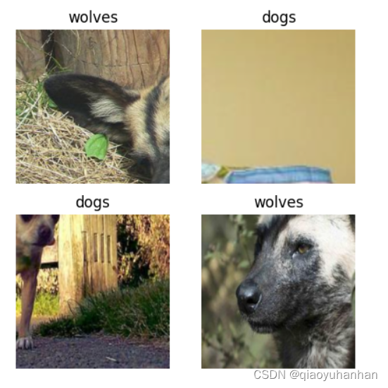 在实际应用场景中,由于训练数据集不足,所以很少有人会从头开始训练整个网络。普遍的做法是,在一个非常大的基础数据集上训练得到一个预训练模型,然后使用该模型来初始化网络的权重参数或作为固定特征提取器应用于特定的任务中。开始训练模型,与没有预训练模型相比,将节约一大半时间,因为此时可以不用计算部分梯度。下载案例所用到的狼与狗分类数据集,数据集中的图像来自于ImageNet,每个分类有大约120张训练图像