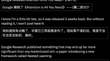 谷歌DeepMind提出嵌套学习框架,借鉴人类联想记忆解决AI"灾难性遗忘"问题。该框架使优化器与架构互为上下文、协同进化,通过不同更新频率的嵌套系统设计,让AI能将短期经验转化为长期知识。实验表明,该技术在持续学习和长上下文处理方面显著超越现有模型,被视作Transformer之后的重要突破,可能真正开启AGI时代。