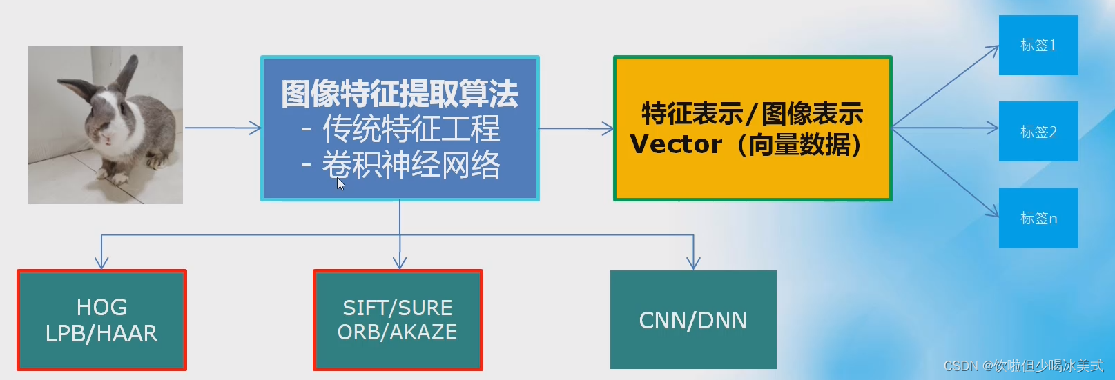 图像特征表示是该图像唯一的表述,是图像的DNAHOGHOG (Histogram of Oriented Gradients)是一种用于目标检测的特征描述子。在行人检测中用的最多。HOG特征描述了图像中局部区域的梯度方向信息,通过计算图像中各个小区的梯度直方图来表示图像的特征。HOG主要使用Sobel算子或其他梯度算子来计算图像的水平和垂直方向上的梯度值。接着将图像划分为多个小的区域(cell),