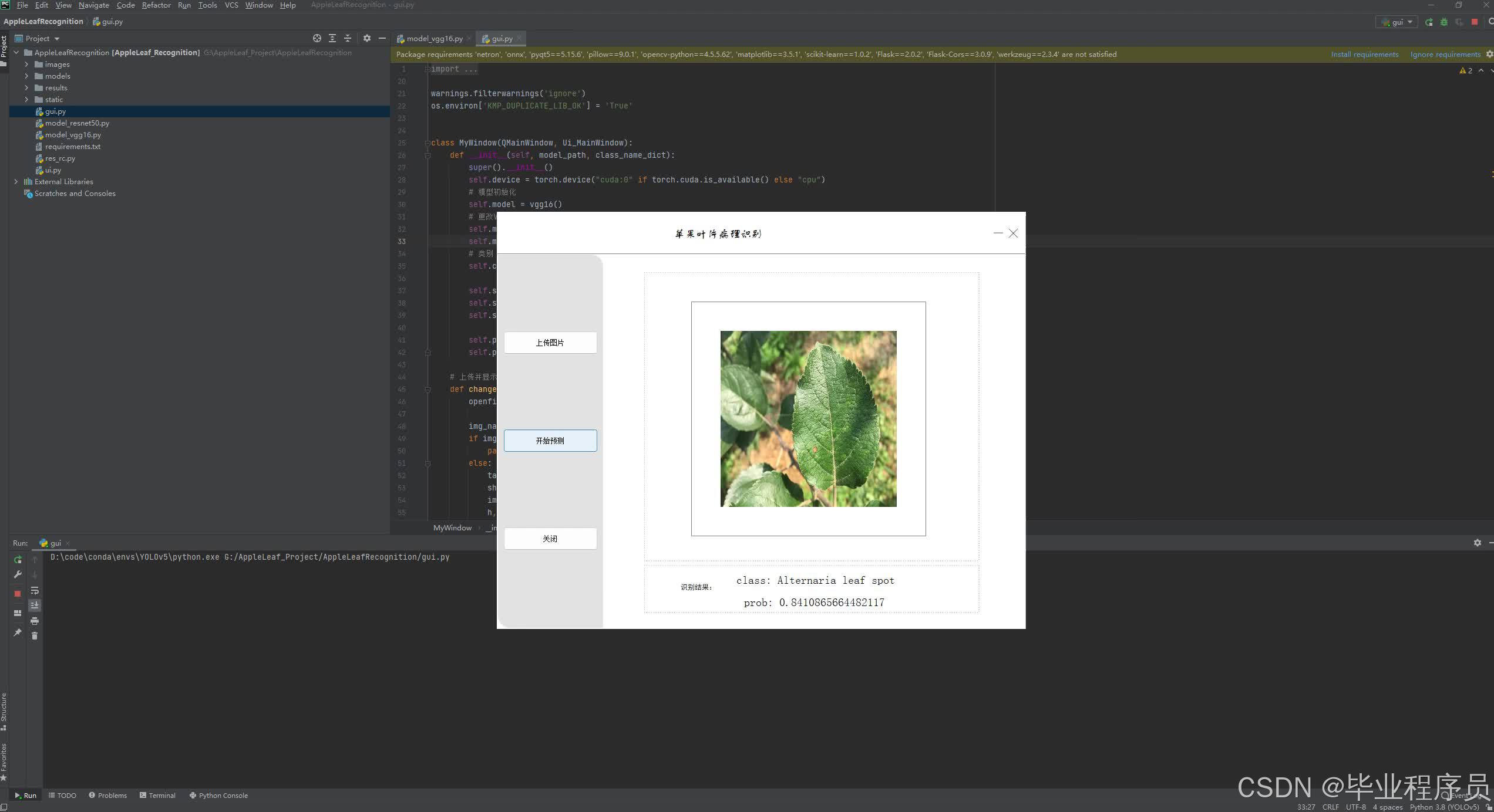 苹果是我国的重要经济作物之一,其产量和消费量均居世界第一。然而,苹果病害的发生给苹果产业带来了巨大的损失。因此,准确地识别苹果叶片和果实上的病害,及时采取防治措施,成为保障苹果产量和品质的关键。本文通过对苹果病害图像进行分析和处理,提出了一种基于卷积神经网络的VGG16和ResNet50苹果病害分类与检测模型。收集了大量的苹果病害图像数据,并对其进行预处理,包括去噪、增强对比度等操作,以减少干扰因