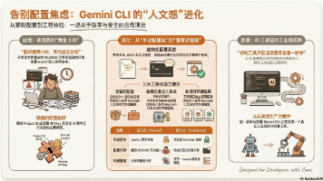 Google更新了Gemini CLI,引入结构化配置系统,简化API Key等环境变量设置。新系统通过gemini-extension.json文件定义配置项,安装时自动提示输入,提升效率。同时增强安全性(敏感信息存入Keychain)和环境隔离(支持--scope workspace)。这一改进旨在提升AI工具链工程体验,使AI开发更便捷,是AI工具链成熟的体现。