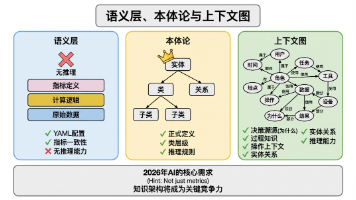 摘要 本文对比了语义层、本体论和上下文图三大语义技术,指出2026年AI的核心需求是知识表示、推理能力和丰富上下文,而非单纯指标。语义层解决指标计算一致性问题,本体论支持逻辑推理,上下文图捕捉决策上下文。知识架构将成为AI时代核心竞争力,组织需平衡两种技术投资,培养知识工程技能,构建支持AI推理的数据架构。文章强调从"指标优先"转向"知识架构优先"的范式转变