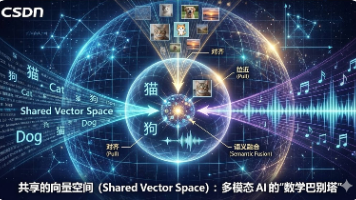 共享的向量空间是多模态 AI 能够“看图说话”的根本数学基石。它构建了一个宇宙通用的概念层,将文字、图片、声音等不同形式的数据统一放入同一个坐标系。在这个空间里,核心规则是“含义相同,坐标必近”,不再区分数据形式。这一过程通常通过“对齐”(如 CLIP 模型的训练)实现,让图像特征与文字特征一一对应。正是有了这个 AI 世界的“巴别塔”,才实现了以文搜图、跨语言迁移和 AI 绘画等“魔法”,打破了