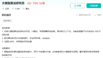 核心岗位包括算法研究员、推理优化工程师,堪称大模型领域的“架构设计师”,核心职责是深耕模型底层架构,追踪顶会最新论文、复现经典模型,同时结合业务场景做架构创新,优化模型参数量和推理速度,解决分布式训练中的各类底层问题[1][4]。方向不对,努力白费。