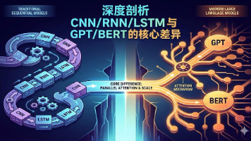 传统序列模型(CNN/RNN/LSTM)与大语言模型(GPT/BERT)并非替代关系,而是互补关系:传统模型是序列数据处理的基础,解决了“从0到1”的序列特征提取问题,在低算力、小数据场景仍不可替代;大模型是语言理解的革命,通过Transformer和预训练范式解决了“从1到100”的通用语义建模问题,在复杂语言任务中展现出碾压性优势。作为开发者,需根据任务需求、数据规模、算力资源三者平衡选型:在