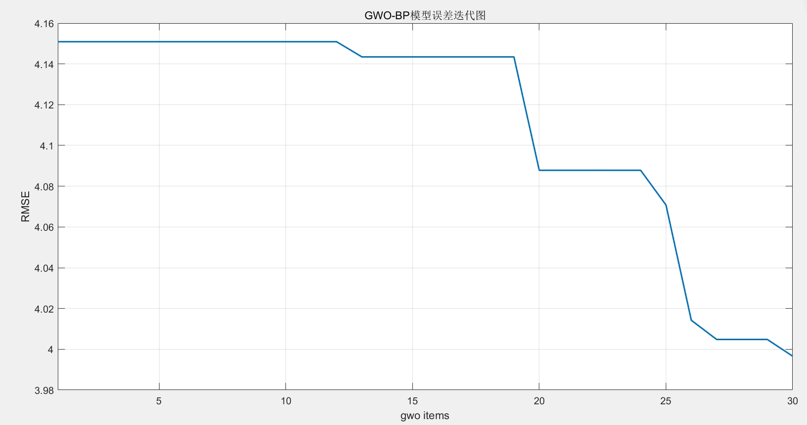 某台660MW机组的实际运行数据显示,优化前MAE(平均绝对误差)在4.3℃左右波动,优化后直接压到1.8℃以下,相当于把主汽温度预测精度提升了一个量级。打开MATLAB准备处理电厂数据的时候,突然发现传统BP神经网络调参真是个体力活——学习率、隐含层节点数、迭代次数,哪个参数没调好预测误差就崩给你看。GWO灰狼优化算法优化BP神经网络(GWO-BPNN)回归预测MATLAB代码(有优化前后的对比