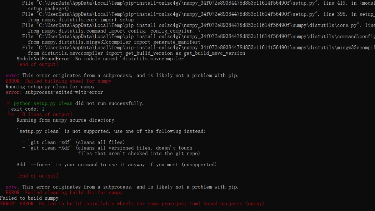 Mxnet安装报错Could not build wheels for numpy, which is required to install pyproject.toml-based project,阅读多篇文章后的个人总结