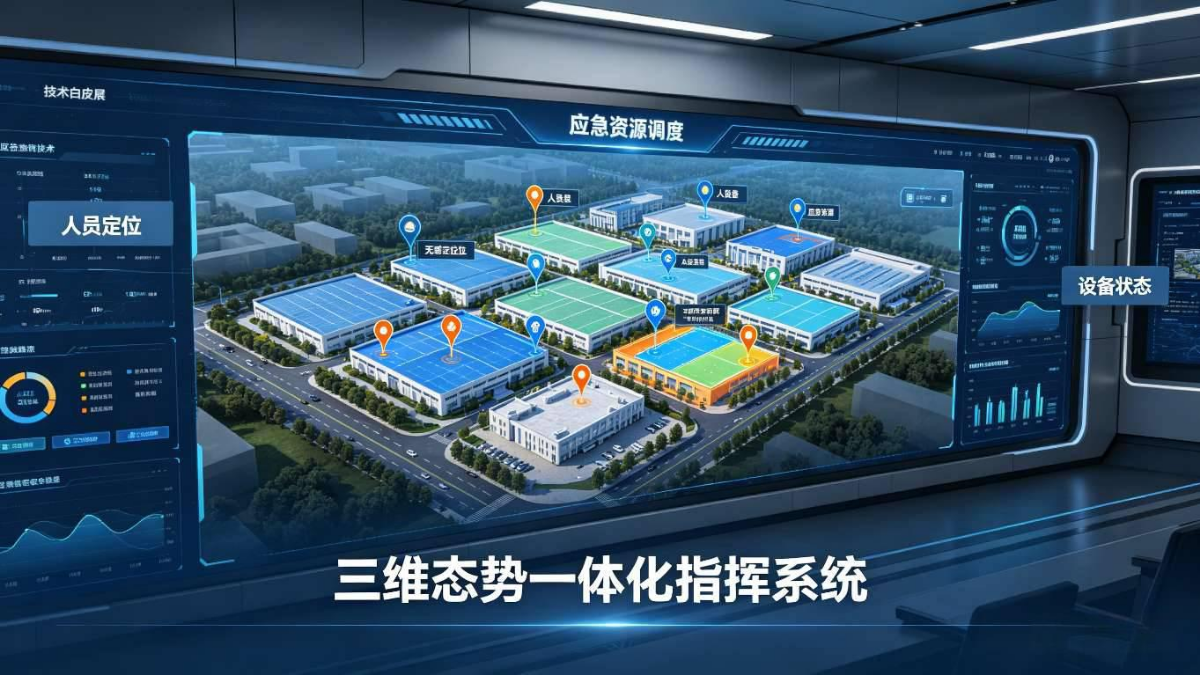 本白皮书聚焦园区应急指挥核心需求,深度阐述无感定位快速锁定人员位置+三维态势一张图调度一体化技术体系,全面解读技术原理、核心架构、功能优势、应用场景与实施价值,为园区应急指挥数字化、智能化、精准化升级提供完整技术解决方案,助力园区构建“秒级响应、全域可视、一键调度、闭环处置”的现代化应急防控体系。整合人员定位数据、视频监控画面、报警信息、消防数据、应急资源、应急预案、气象环境等全维度数据,统一叠加