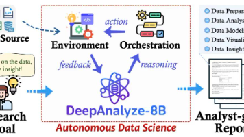 DeepAnalyze是业界首个能自主完成数据科学任务的智能体大语言模型,支持全流程自动化处理,包括数据准备、分析、建模、可视化和报告生成。它可处理多种数据源(结构化、半结构化、非结构化数据),完全开源并提供API接口。开发者可快速部署或基于其框架扩展自己的数据分析助手,适用于从编程小白到专业数据分析师的各类用户。