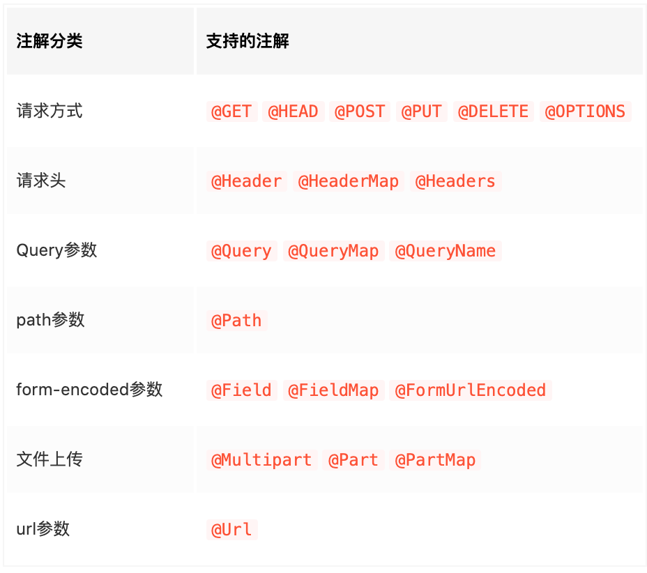 Retrofit是适用于Android和Java且类型安全的HTTP客户端,其最大的特性的是支持通过接口的方式发起HTTP请求。而是使用最广泛的Java开发框架,但是Retrofit官方没有支持与框架快速整合,因此我们开发了。实现了Retrofit与框架快速整合,并且支持了诸多功能增强,极大简化开发。接口必须使用注解标记!http相关注解可参考官方文档:retrofit官方文档。通常情况下,通过注