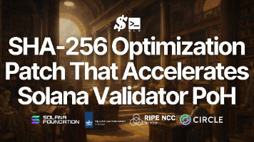 开源 Solana 开发工具 SLV 集成 kagren patch,对 PoH 最热路径的 SHA-256 计算进行 SHA-NI 专用优化。在 AMD Zen3+ CPU 上实现 10–20% 的 PoH speed check 提升,直接增加 leader slot 处理余量。本文解析补丁原理、兼容性设计与 SLV 的自动化 build/deploy 流程。