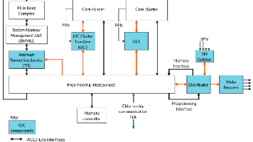 GIC700包含几个重要的块,它们组合在一起工作,在系统中创建一个体系结构兼容GICv3、GICv3.1、GICv4的实现。Distributor(GICD):gicd是GIC交互以及实现SPIs和LPIs功能的中心组件。它对除了GITS- TRANSLATER寄存器的整个GIC编程模型负责。在支持GICv4.1架构的实现中,gicd还会管理vSGIs和vPEs。gicd还维护multichip下