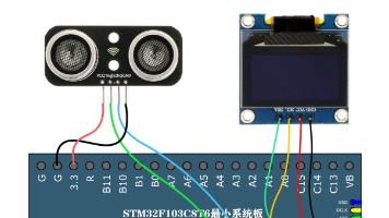 HS-SR04超声波模块是HC-SR04的优化版本,具有更高精度、更小盲区,适用于避障、测距、液位检测等场景。实验采用OLED显示屏(VCC-3.3V,SCK-B8,SDI-B9)和HS-SR04模块(Echo-GPIOB6,Trig-GPIOB5)连接STM32开发板。通过烧录配套代码(提供下载链接),可在OLED上实时显示测量距离。模块接线图和实验结果图片直观展示了硬件连接与测距效果。