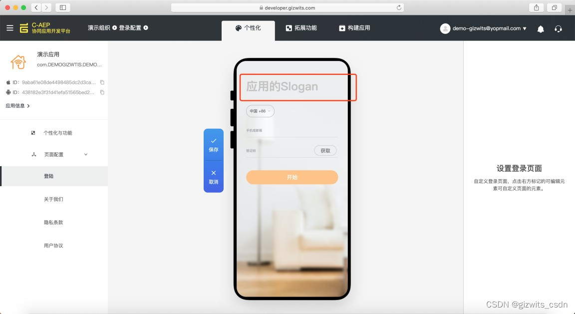 帮助企业/个人开发者轻松解决智能化难题,以更人性化的功能听懂所有方言,以更自如的状态应对突发事件,以更省心的方式掌握家的光照,解放双手,让智能生活享你所想。►进入应用详情,上方切换到“个性化”,左侧点击“个性化与功能”,右侧选择“信息”,可设置APP图标和启动页图片,中间可预览显示效果。►右侧切换“关联”功能,可关联和显示已关联产品,只有关联了的产品才能显示在APP上面对应的设备。►点击左侧【多语