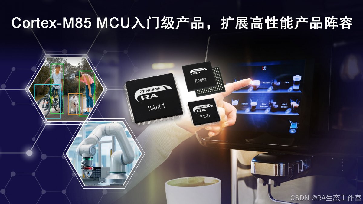 Arm Cortex-M85 RA8系列于2024年11月推出RA8E1和RA8E2两款新产品。这两款新产品已正式量产上市,将高算力的RA8系列扩展到入门级领域的应用,降低BOM 成本,扩大RA8高性能产品线。