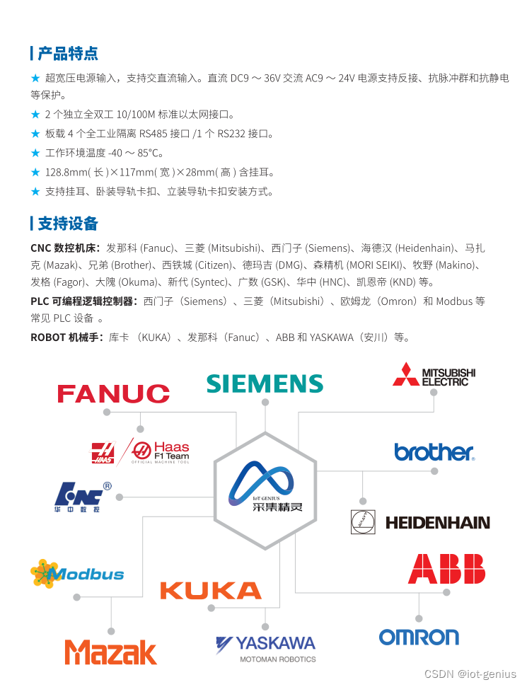 数据采集盒子基本可以满足工位级设备的数采需求,包括设备状态(启停、报警、故障),设备加工信息(加工数量、检测结果等),工单、人员等信息的简单展示,简单信息的录入和输入等需求。