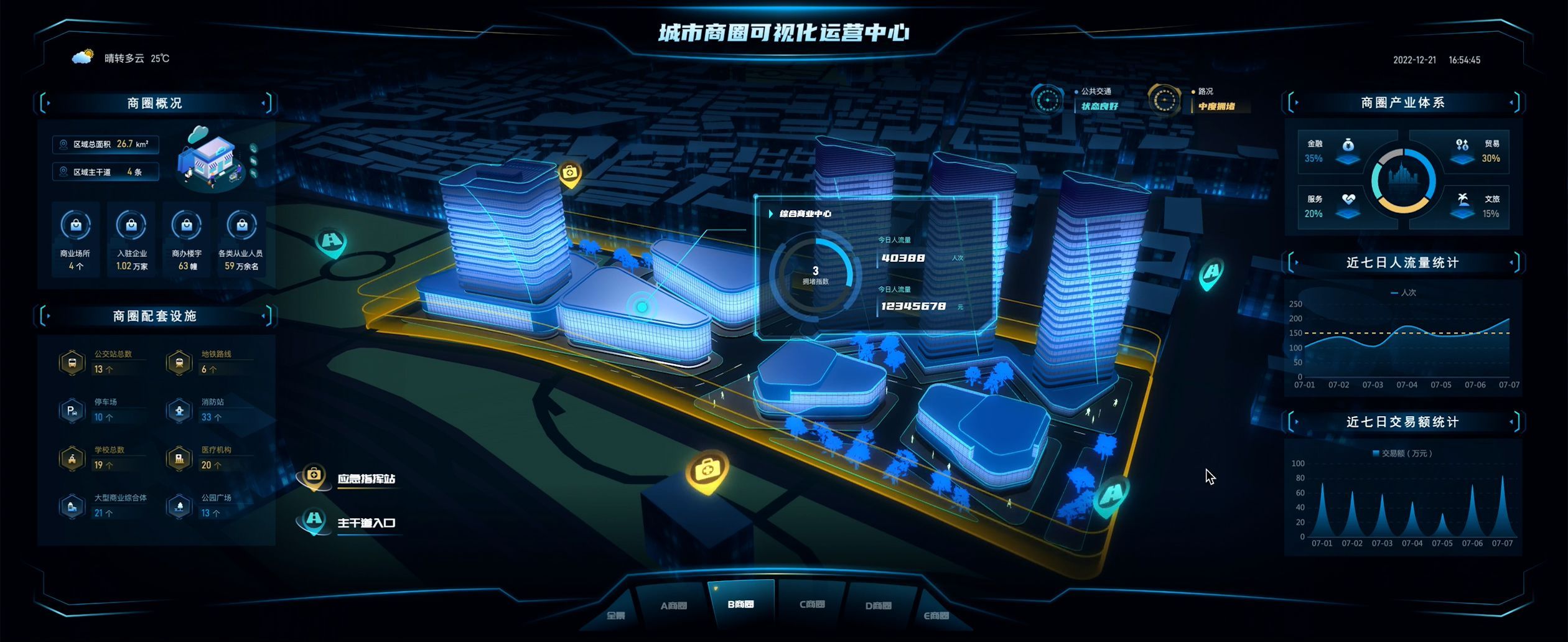 智慧城市,这是一个融合了先进计算机图形学的创新概念。在这个虚拟世界里,我们熟悉的城市景象、巍峨的建筑、纵横的道路、坚固的桥梁等,都被精心地转化成了三维数字模型,展现出逼真的效果,让人仿佛身临其境。这些模型不仅细节丰富,而且支持与用户的互动,你可以通过各种设备如电脑、手机或大屏幕来深入探索这个虚拟城市的每一个角落。智慧城市的应用场景十分广泛,涵盖了从城市规划、建筑设计,到交通管理、应急救援等众多领域