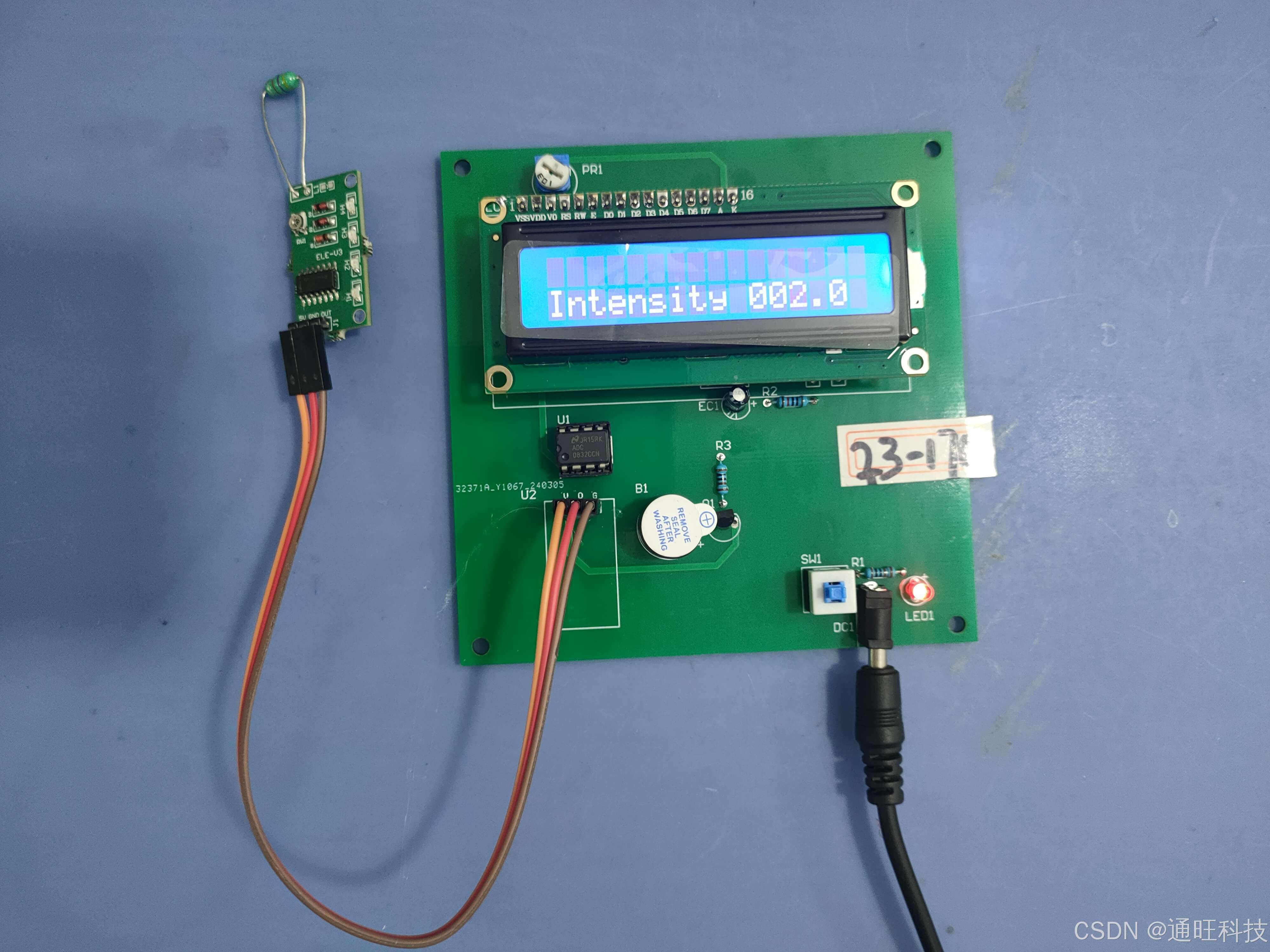 本设计由STC89C52单片机电路+电磁辐射检测传感器模块电路+ADC0832采样模块电路+LCD1602液晶显示电路+蜂鸣器报警电路+电源电路组成。1、LCD1602液晶实时显示电磁辐射值。2、如果电磁辐射超过一定值,则蜂鸣器报警,否则蜂鸣器不报警。