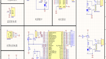 本系统由STC89C52单片机最小系统电路、OLED液晶显示电路、DS18B20温度检测电路、风扇驱动电路、光敏检测电路、高亮LED灯电路、无线WIFI模块、按键电路、电磁锁、一个湿敏电阻模块和一个控制水泵模块及电源组成。【1】单片机实时采集温度数据、光照强弱状态,通过不同的模式进行控制风扇、高亮LED灯的开关状态,其中风扇可以调节档位的(0-5挡),而高亮LED只有开关2种状态。本设计分为自动控