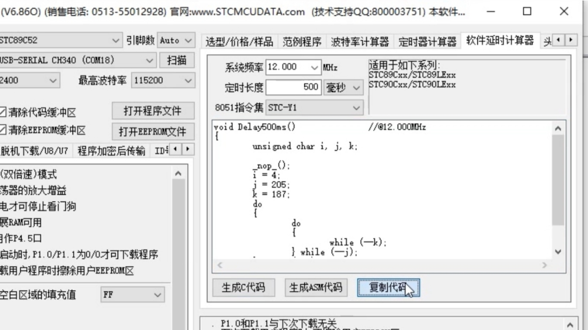 通过51单片机的烧录软件STC-ISP,只需给定系统时钟频率、定时长度及8051指令集,即可轻松生成延时代码。那么这个延时是如何计算出来的?本文可以进行一些解释,如有错误请指正。
