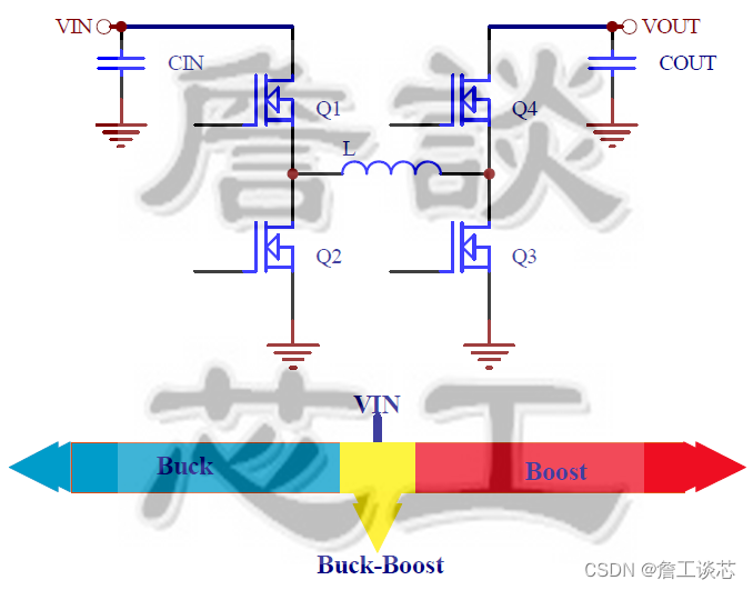 升降压控制器具有三种工作模式,分别为降压、升降压及升压,主要决定于输入与输出电压间的差异