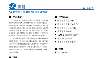 XT6271是一款高集成度升压型DC-DC转换器,采用电流模恒定导通时间(COT)架构,集成3A功率开关管。具备2-6.5V宽输入电压和2.5-22V输出电压范围,1.2MHz固定开关频率,静态功耗仅25μA。芯片支持软启动、可编程限流及多重保护功能,适用于便携设备、无线通信模块等应用。设计要点包括合理选择电感(3.3-22μH)、低ESR电容和快速肖特基二极管,并优化PCB布局以降低损耗。该芯片