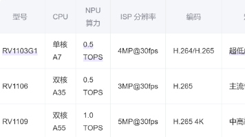 瑞芯微RV1103G1是一款超低功耗AI视觉处理器SoC,面向成本敏感型智能设备。该芯片采用单核A7架构(1.0GHz),集成0.5TOPS NPU算力,支持1080p H.264编码和4MP ISP处理,典型功耗仅100-300mW。相比RV1106精简了部分功能,但保留了基础AI视觉能力,特别适合智能门铃、安防IPC等应用场景。开发需注意内存限制(建议64MB DDR2)和模型优化(仅支持轻量