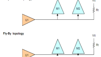 T型拓扑对等长有严格要求,即从主芯片到每颗DDR芯片之间的同类信号PCB布线长度要保持等长、图示PCB Layout布线中L1+L2+L6=L1+L2+L7、L1+L3+L4=L1+L3+L5等臂分支等长;单颗DDR采用点对点布线方式,两颗DDR采用T型结构布线方式,四颗DDR时根据芯片是否具有读写平衡功能,选择T型结构布线、Fly-By Scheduling布线、T型+Fly-By Schedu