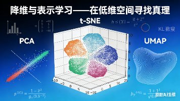 本文聚焦高维数据面临的 “维度灾难” 问题,系统梳理了降维与表示学习的核心方法:从经典线性降维的 PCA(无监督、保全局方差)与 LDA(有监督、强分类区分度),到适配非线性数据的流形学习工具 t-SNE(优可视化)与 UMAP(快且保全局结构),再到基于神经网络的自编码器 / 变分自编码器(复杂数据压缩)和前沿的对比学习(无监督特征学习)。文末结合手写数字数据集实战,对比各类算法效果并给出选型建
