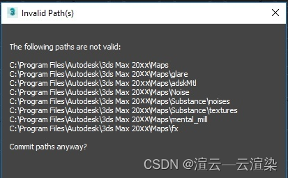 路径无效C:Program Files\Autodesk\3ds Max 20xx\MapsC:Program Files\Autodesk\3ds Max 20xx\glare...是否仍提交路径?