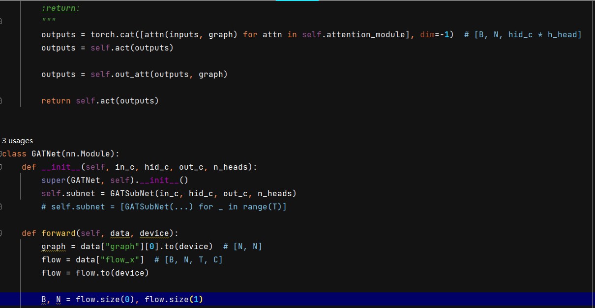 交通流量预测总让人头秃,尤其是路网这种天然带图结构的数据。今天咱们直接上手一个基于注意力机制图神经网络的实战项目,用PyTorch实现那种能看懂红绿灯般智能的预测模型。先甩个Github地址(假装有),数据集用PeMS-BAY这种经典交通流数据,包含传感器节点和车辆速度时间序列。关键不是绝对精度,而是模型能在突发拥堵时(比如交通事故)比传统ARIMA方法更快响应——这得益于图结构的信息传递机制。这