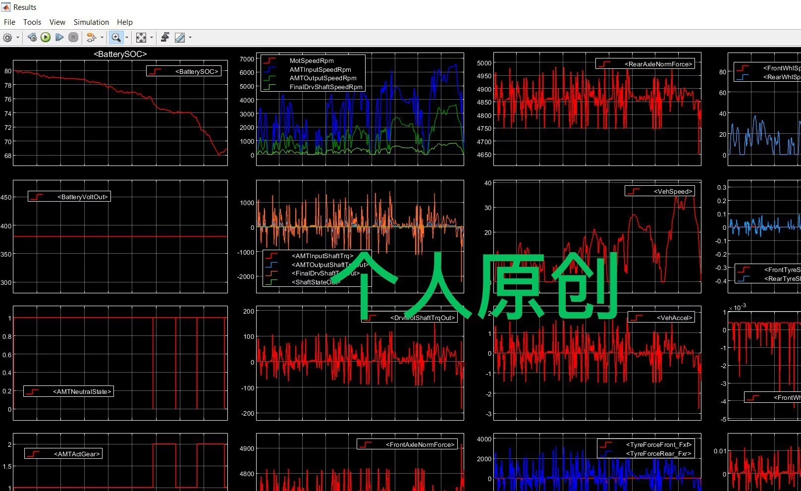 两挡AMT纯电动汽车仿真模型,可实现换挡过程模拟/ABS/TCS驱动防滑控制/电池管理等功能模型可以输入WLTC/CLTC等不同工况,可以实时纯电量管理、换挡过程模拟、ABS防抱死控制、TCS驱动防滑控制、电池管理充放电控制、SOC估计等功能。各个功能模块高度独立,可修改成各类控制算法。模型未参考官方demo模型,也不是在别人模型基础上修改后再高价的模型,适合理解,方便修改使用。