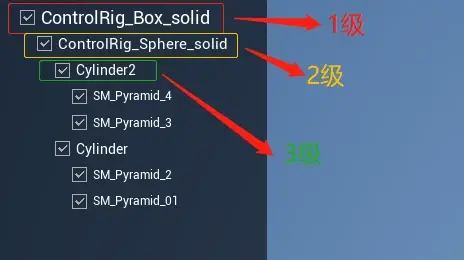 4、按照层级划分进行分组(此分组影响进UE里层级的划分)2、分别进行命名,进行层级划分命名。3、将坐标轴归于模型中点。1、模型按照需求拆分。