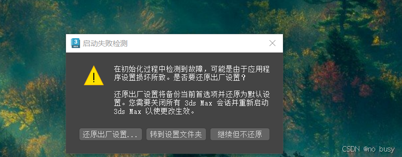 3d max 2023打不开,一直出现这个提示,无论选哪个都加载不出来页面,同时装了maya2022,之前两个软件一直同时使用没问题
