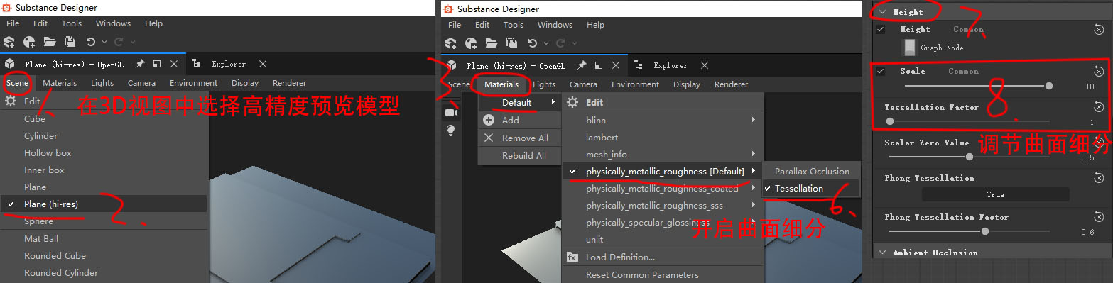 高度图转fbx要求2021.1版本以上1、在3D视图中选择高精度预览模型2、开启曲面细分3、调节曲面细分4、导出Fbx模型