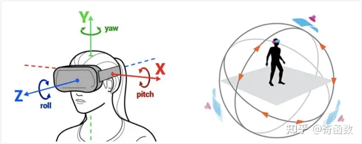 6DoF(Six degrees of freedom tracking,六自由度追踪)是指用户可以在物理空间内任何位置、任何方向自由地观看节目素材。用户移动可以被传感器或输入控制器捕获到,同时支持用户空间位移和头部姿态变化。典型的应用场景是用户自由走动并同时通过 HMD 观看 VR 视频内容。3DoF与6DoF技术对比图一3DoF与6DoF技术对比图二1、3DoF的VR眼镜(设备),是指该VR设