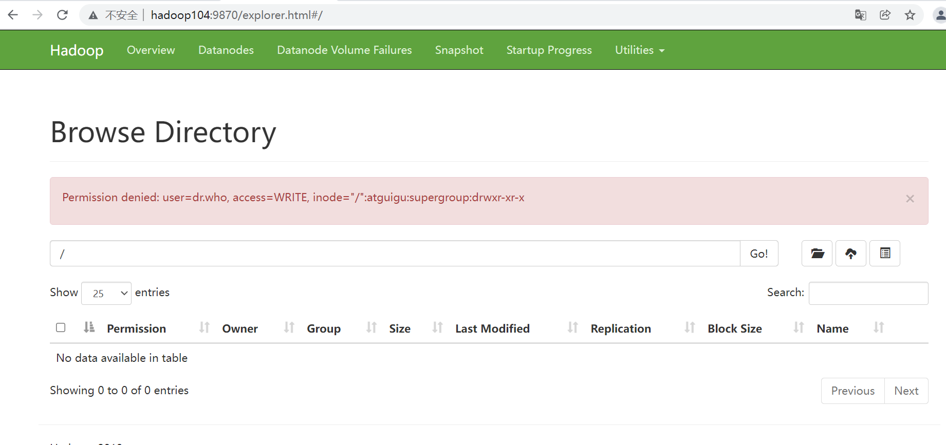 搭建Hadoop HA集群时,遇到的问题:Permission denied: user=dr.who, access=WRITE, inode=“/“:hadoop:supergroup:drwxr-xr-x 即在HDFS提供的网页上新建文件等其他操作、Linux系统的hdfs fs -mkdir /input 等其他操作时,提示报错,不能实现操作解决方法:采用在Linux系统编辑opt/ha/