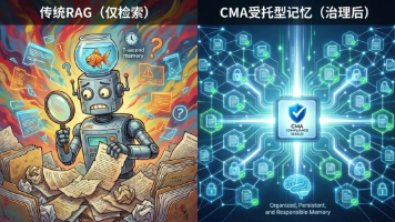 文章指出RAG技术在金融AI应用中存在三大局限:概率性不确定性与合规要求的冲突、缺乏客户情景记忆、缺乏数据治理。作者提出认知记忆框架(CMA)作为解决方案,包含情景记忆、语义记忆和程序性记忆三类记忆,使AI具备"受托人"属性,实现从"检索事实"到"履行责任"的跨越,满足金融合规要求。