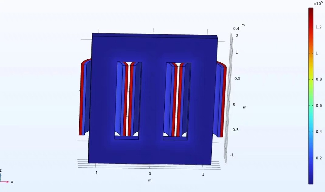 comsol的单相变压器绕组及铁芯振动形变仿真模型1、单相变压器组振动形变模型:绕组在漏磁场的洛伦兹力作用下振动,在长期作用下发生位移形变2、单相变压器铁芯振动形变模型:铁芯在磁致伸缩作用下发生振动形变注:时域仿真可以设置观察点,导出随时间变化的变压器磁通、位移、压力、形变曲线在电力系统的研究中,单相变压器的振动形变分析至关重要。Comsol 提供了强大的工具来构建相关仿真模型,帮助我们深入了解其