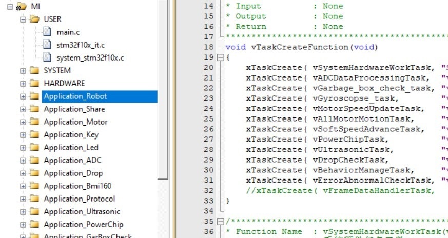 知名扫地机代码方案 某知名大厂扫地机代码适合需要学习项目与代码规范的工程师硬件驱动包含 陀螺仪姿态传感器bmi160、电源管理bq24733等。软件驱动包括 IIC、PWM、SPI、多路ADC与DMA、编码器输入捕获、外部中断、通信协议、IAP升级、PID、freertos操作系统等。代码注释清晰、代码规范好、每个函数必有输入输出范围参数解释。最近研究了某知名大厂的扫地机代码方案,感觉收获满满,特