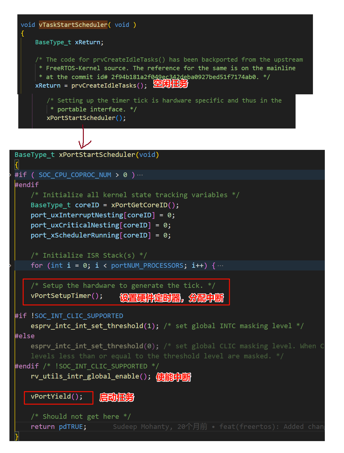分析risc-v架构的esp32中espidf中freertos中的实现