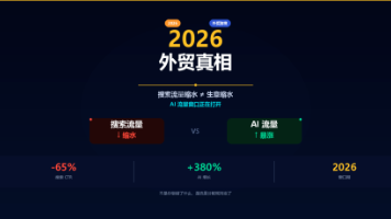 今天这篇深度好文,结合全球权威机构公开数据、海外采购行为调研、主流搜索引擎与 AI 平台官方更新规则,客观拆解 2026 年外贸流量大变局,讲一讲搜索流量衰退的核心原因、AI 流量暴涨的底层逻辑,同时结合真实行业案例与可落地的实操方向,帮所有外贸人看清行业真相,避开内卷陷阱,抓住新一轮流量红利。现如今做外贸的朋友,应该都有切身的直观感受:行业环境越来越卷,获客难度持续攀升,投入的推广成本逐年增加,