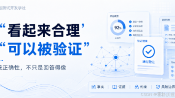 AI 系统不是一种系统,而是一组系统形态。不同形态下,正确性的重点完全不同。AI 系统的正确性,不是输出一个唯一标准答案,而是在特定任务契约下,满足事实、证据、约束、格式、行动和风险边界。任务契约。每个 AI 能力上线前,都应该定义清楚它的任务契约。输入:需求文档、接口文档、业务规则输出:结构化测试用例列表必须满足:1. 覆盖主流程、异常流、边界值2. 不编造需求文档中不存在的功能3. 输出字段符