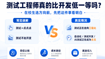 应届生看到测试岗位工资偏低,不要只得出一个结论:“测试不行。基础功能测试门槛相对低,所以容易被压价。很多公司对测试价值认知不足,所以初级岗位定价偏低。只会执行测试流程,很难获得高薪。接口、自动化、性能、测试开发、AI 测试,才是测试岗位拉开差距的关键。未来测试不会消失,但测试人员必须从执行型转向工程型。对于应届生来说,真正要思考的不是:“测试岗位工资为什么低?我准备进入的是低门槛测试,还是高成长的