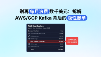 云上Kafka集群的跨可用区(AZ)流量费用可能占到总成本的50%以上,却常被忽视。AWS/GCP对跨AZ数据传输双向收费($0.02/GB),而Kafka的3副本架构必然产生大量跨AZ流量:Producer写入(2/3概率跨AZ)、Leader-Follower复制(确定性2GB/1GB写入)、Consumer读取(多组重复消费)。典型100MB/s生产集群月流量费可达$24,000,优化后仍需