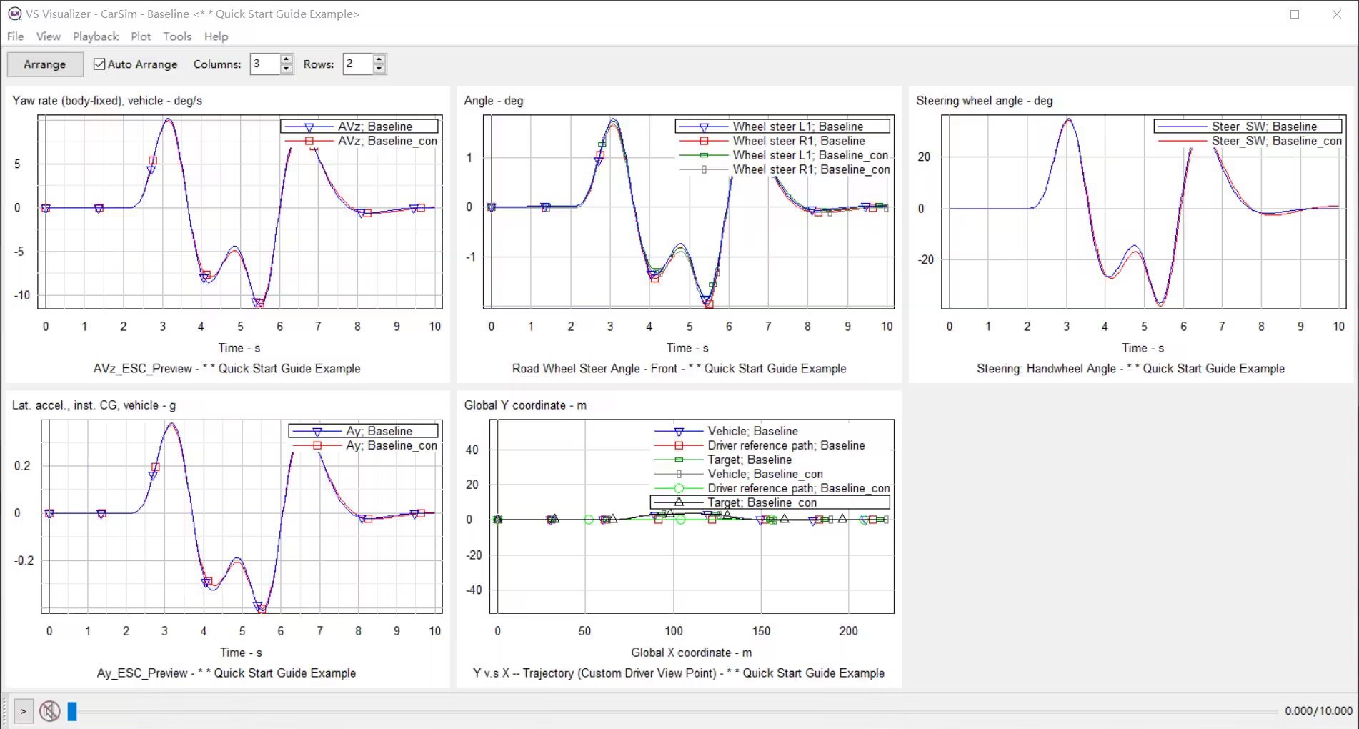 线控转向系统Carsim和Simulink联合仿真模型,带Carsim数据库,C级车。【正向建模,利用三环PID控制算法控制无刷直流电机获得前轮转角】主要根据Carsim自带的转向系统,查出小齿轮和转向角之间的关系,利用查表法反推目标转角,而后通过无刷直流电机模型跟踪目标转角。图示为:角阶跃工况下,仿真模型前轮转角、横摆角速度、侧向加速度、轨迹图。最后一张图是 双移线 工况的响应曲线,拐角处响应跟