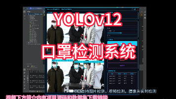 本文提出了一种基于YOLOv12深度学习算法的口罩识别检测系统,旨在实现公共场所中人员口罩佩戴情况的自动化监测。系统采用改进的YOLOv12目标检测架构,针对口罩识别任务进行了优化调整。研究构建了包含7,959张标注图像的自定义数据集,其中训练集6,732张,验证集1,227张,包含"佩戴口罩"和"未佩戴口罩"两类目标。系统实现了高精度的实时检测能力,平均精度(mAP)达到96.2%,检测速度在N