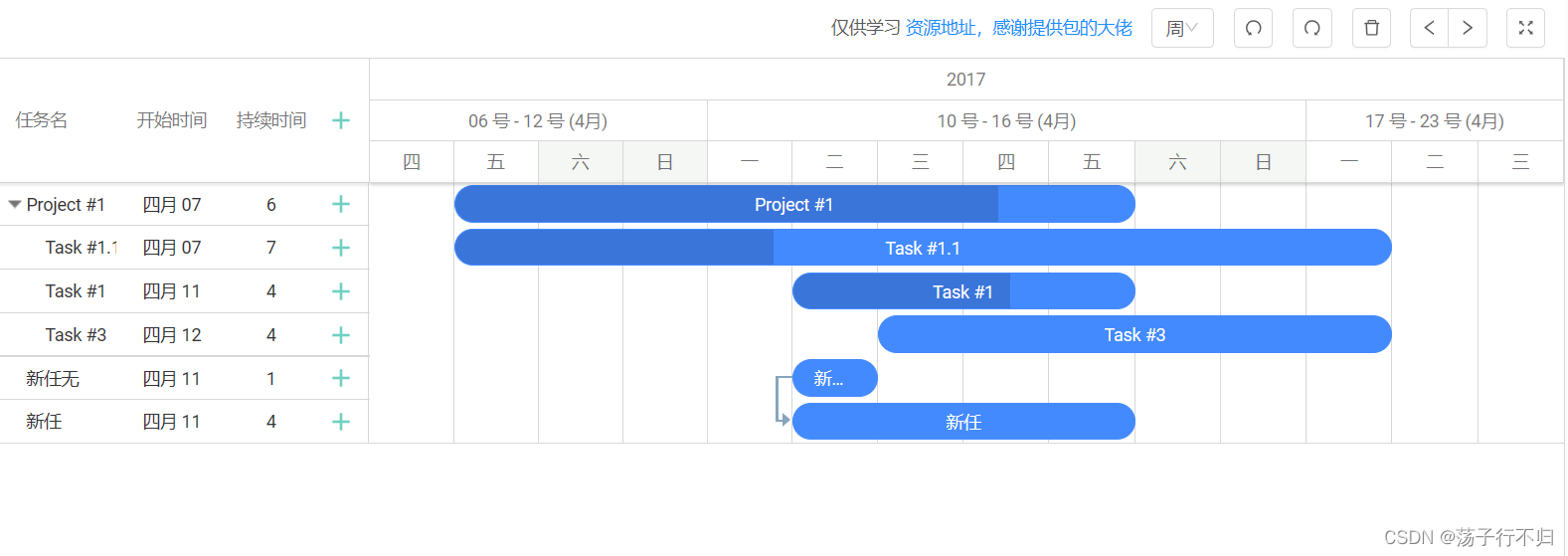 在有些项目中需要使用甘特图来标注任务进度以及时间跨度。那么如何使用dhtmlx-gantt来实现甘特图呢?1先安装dhtmlx-ganttyarn adddhtmlx-gantt2引入,通过以下代码即可得到甘特图<template><div style="height:600px;" ref="gantt"></div></...