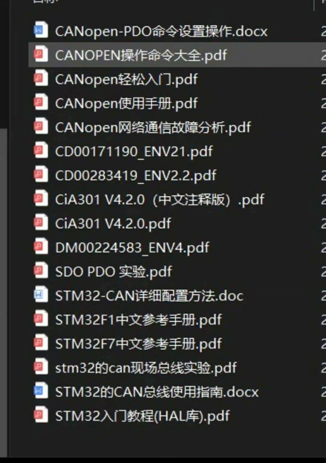 CANopen协议代码,学习资料,包含CANfestival官方代码框架,官方字典生成工具,可自主设定心跳,pdo,sdo等内容参数,并包含已经移植完成的且带有详细注释的一个主站程序两个从站能正常通信,文档中还有大量本人学习CANopen时从csdn,百度文库等平台下载的参考文档与本人学习完后写的总结心得。本CANopen网络采用CANfestival框架,网络由一个带有STM32F765VGT6