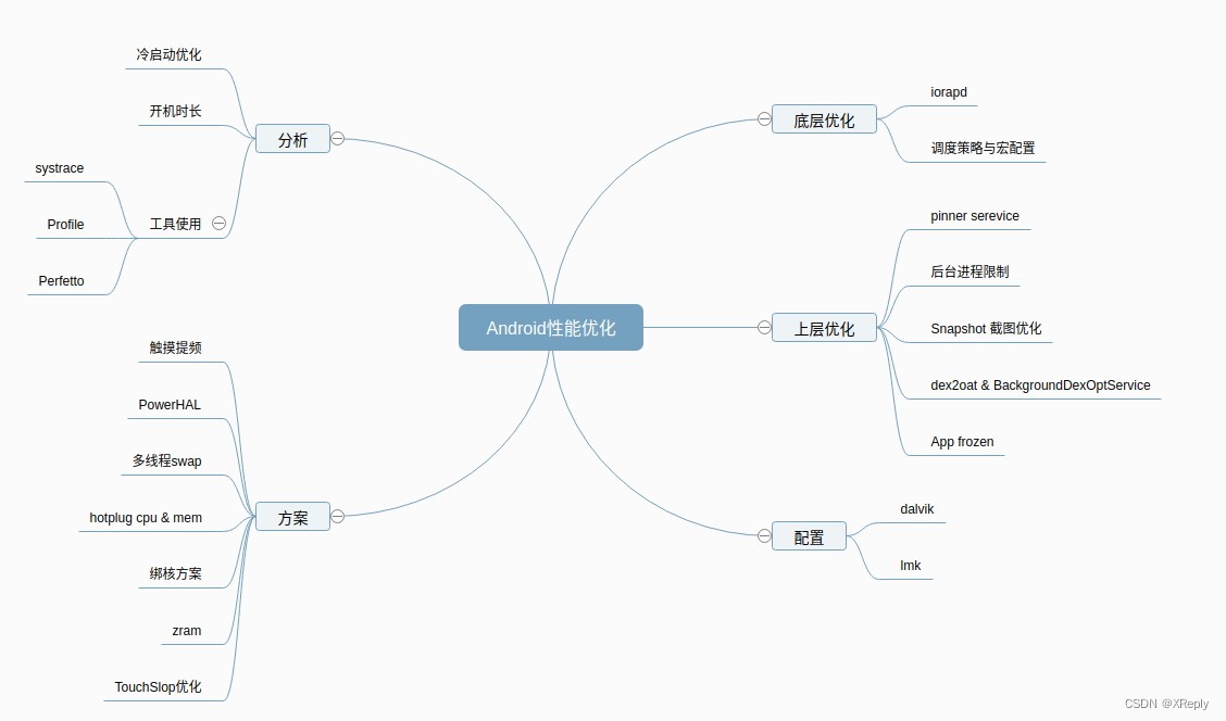 1. PinnerService2.App Frozen3. dex2oat & BackgroundDexOptService4. SnapShot截图优化5. 后台进程限制6. iorapd7. 调度策略与宏配置8. dalvik & lmk9. 冷启动优化10. 开机时长优化11. 性能常用工具使用12. 触摸提频13. PowerHal14.多线程swap15. hotplug cpu &